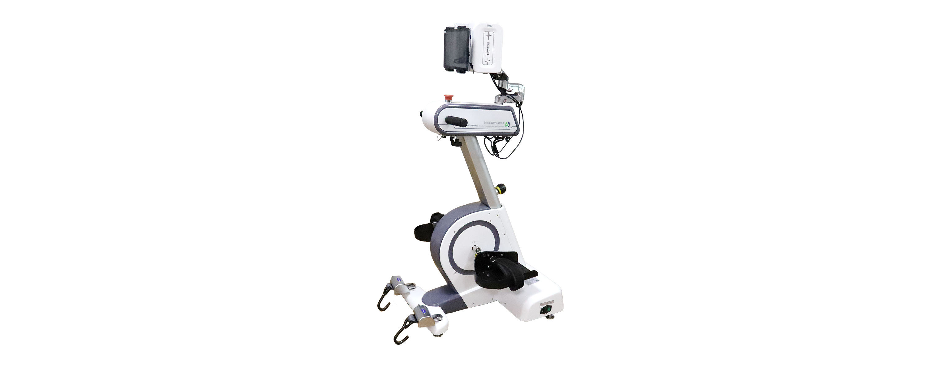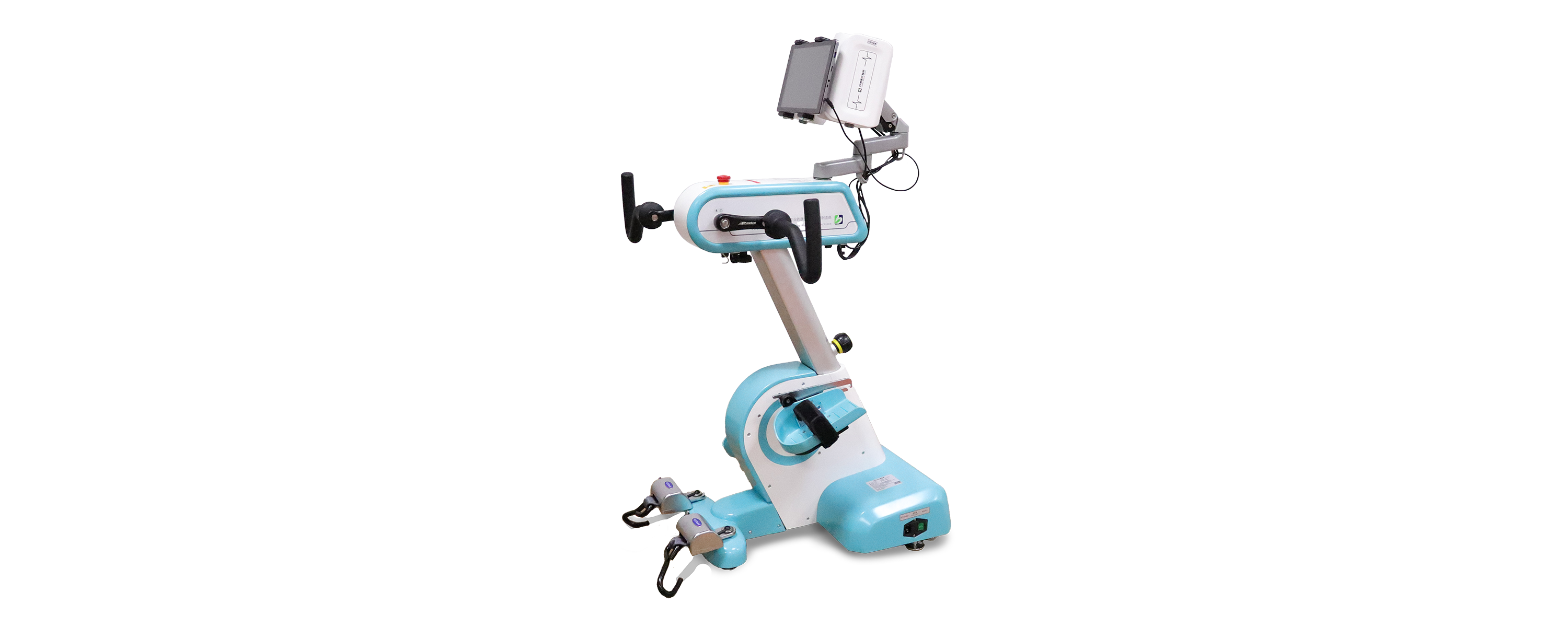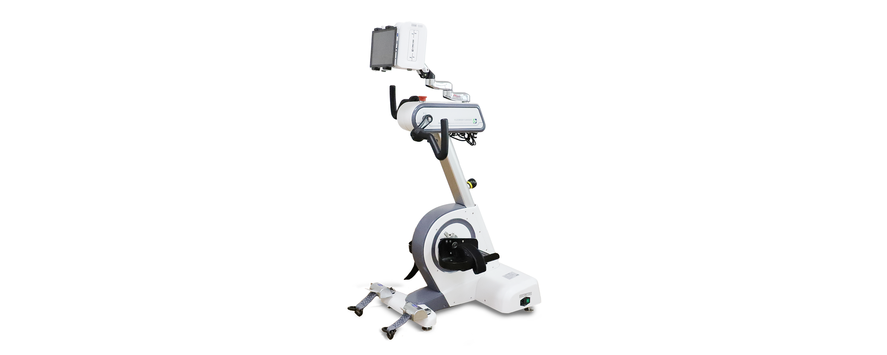 根据预设参数输出给定信号,将多通路、程序化的FES与运动相结合,支配及诱发相应的肌肉发生收缩,同时设备通过电机带动患者或患者主动训练使肢体末端沿定轴作圆周运动,从而对上肢或下肢的整个肢体(包括肩、肘、腕、指、髋、膝、踝关节和相关肌群)进行综合运动训练,以增强患者关节活动度和肌力。