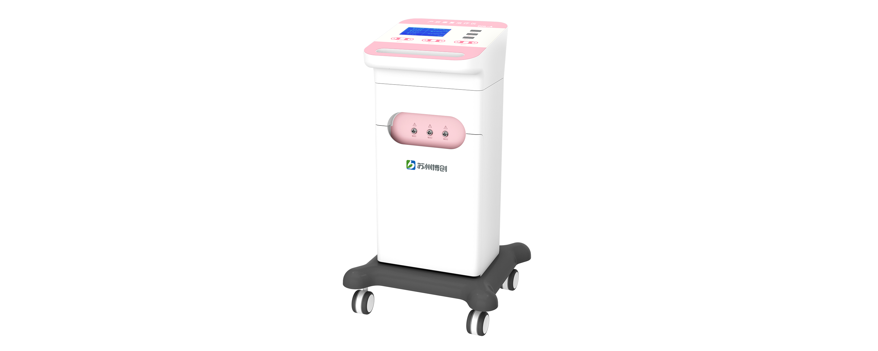 产后康复治疗仪采用低频调制脉冲原理,通过导电极片作用于病人的皮肤上,通过电脉冲的刺激使肌肉产生松弛、紧张的运动,加快局部血液循环,从而达到治疗目的。